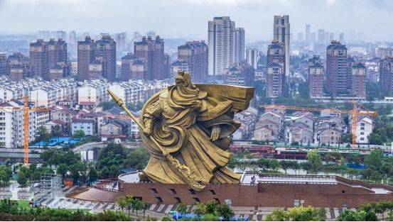 这个关二爷的雕塑,其实就坐落在荆州关公义园,据说他的净身高能够达到将近50m左右,而且整个身体的重量已经超过了1200吨,可以说放眼全球,都没有一个如此巨大的关二爷雕像,最重要的是这个雕像之所以这么重,不仅仅是因为它的体积庞大,更是因为他在外表上,贴了将近四千多片的青铜。