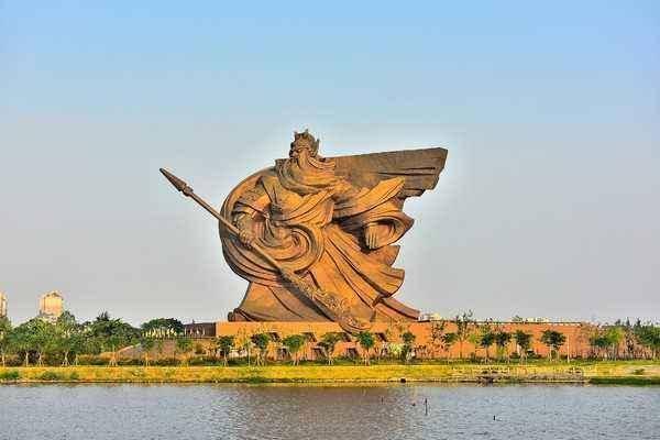 因此如果我们远远的看过去的话,能够发现整个雕像,在太阳光的照射下散发着光芒,非常的雄伟壮观,而且光关二爷手中拿的,青龙偃月刀就重达136吨,可以说关二爷和他的刀,都耗费了当时工匠们的不少心血。