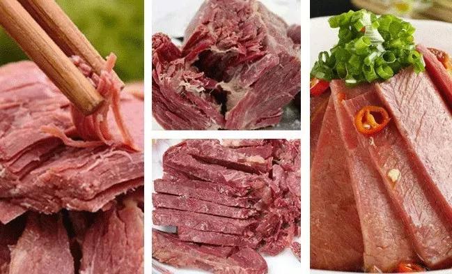 “腌”是把牛肉切成16块到26块,加食盐腌制。用盐数量依季节不同而不等,浸泡的时间也因季节而异,天热则短,天冷则长。