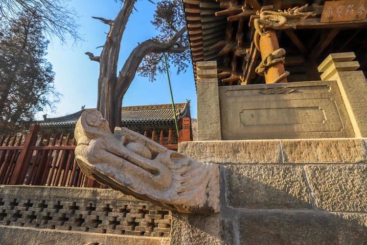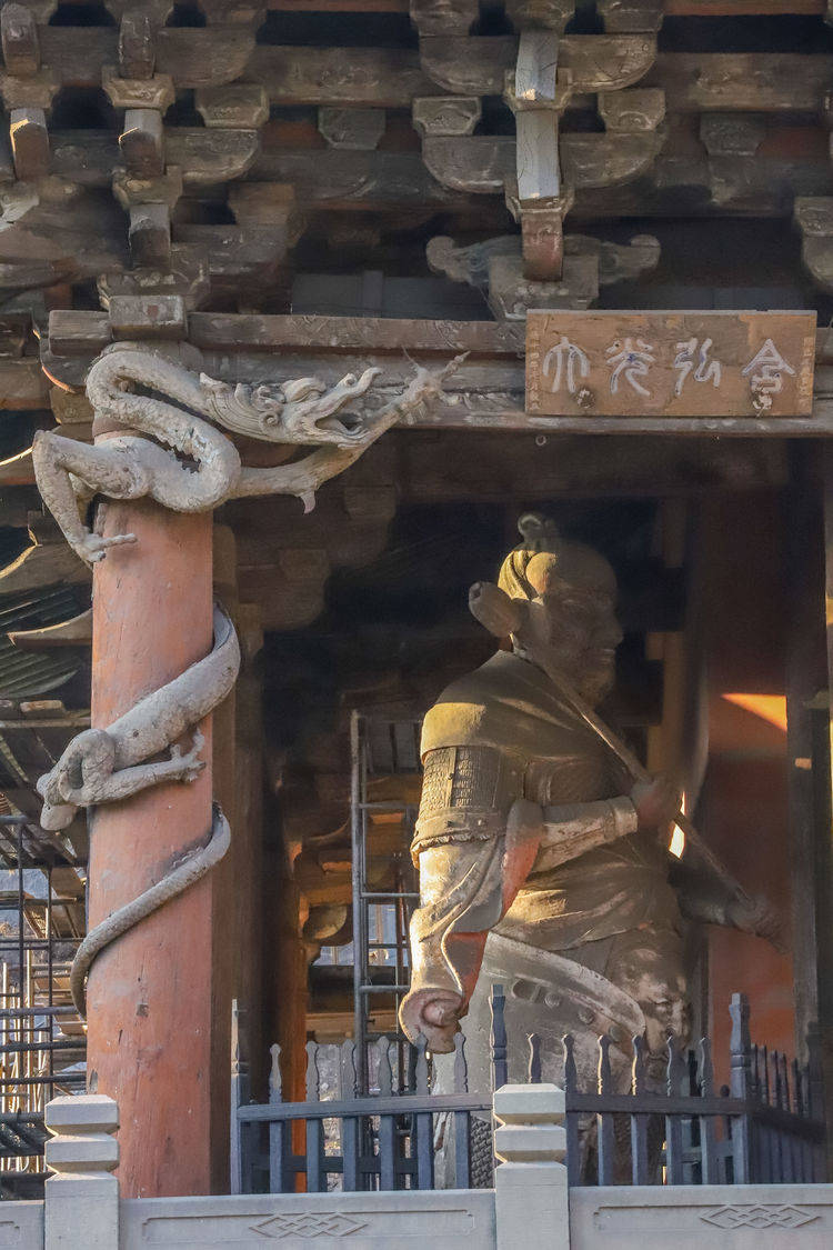 还有殿前面的檐柱上,有根雕盘龙,是中国现存最早的木雕盘龙,游龙非常的立体,它缠在柱子上,很有威严。