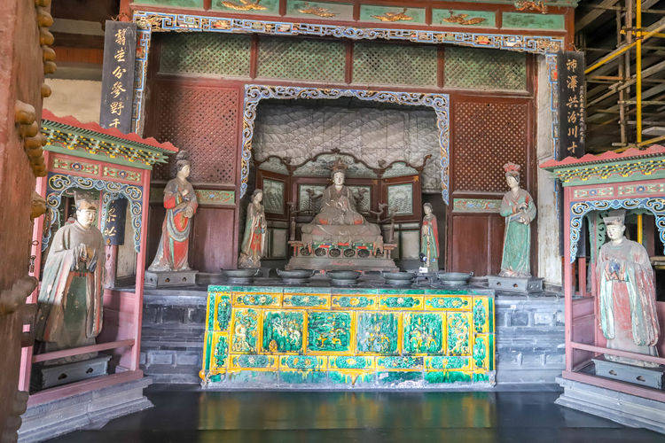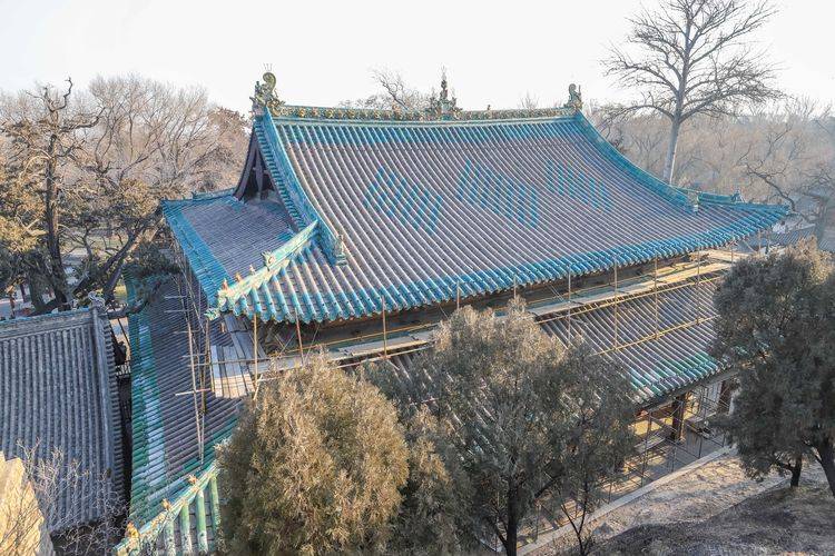 “圣母殿” 为重檐歇山顶,大殿现在正在维修,封闭了一半区域,它始建于宋太平兴国九年,后面每个朝代也都有维修。
