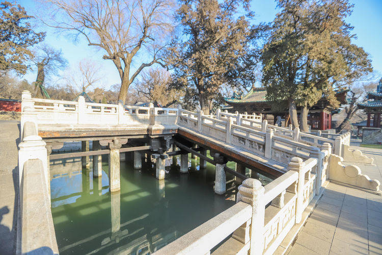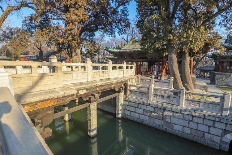 “鱼沼飞梁”就是中国最早的十字型立交桥,这座古桥梁始建于北魏时期,现在遗留下来的十字梁架为宋代的遗物。它的沼池内为石柱,上面用原木斗拱和横梁支撑上上面的石桥。