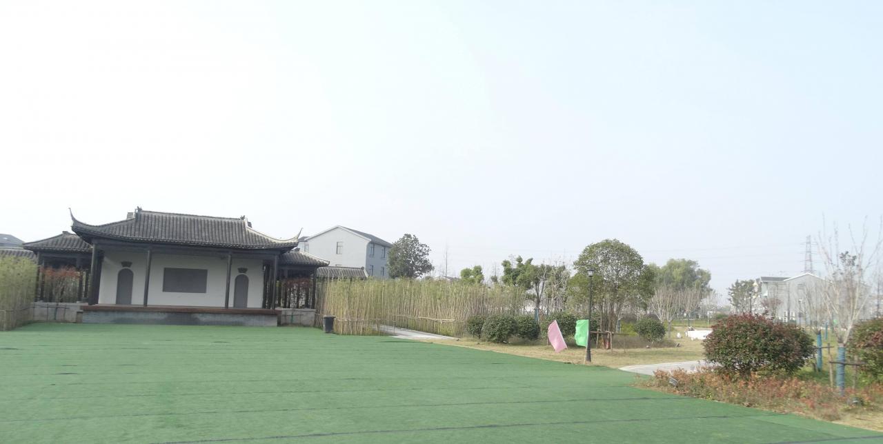 一条笔直的两车道柏油路通向京杭大运河,路左边绿树成林,树木森森,S39高速公路穿村而过。路右边是一眼望不到的花圃,虽已冬天,仍有漫山遍野的菊花盛开,白的,黄的,红的各种菊花争奇斗艳,花圃中央有一个观景台。