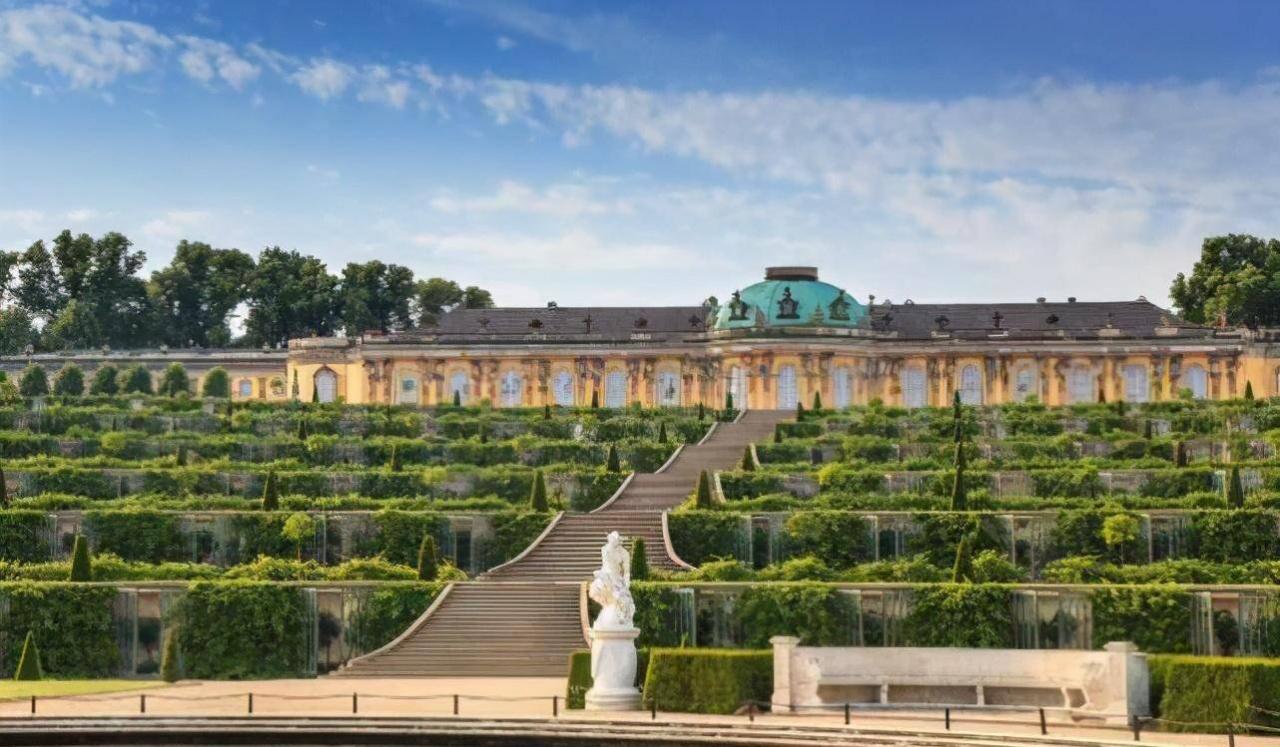 德国波茨坦的桑苏西宫是普鲁士国王腓特烈大帝的夏宫。宫殿的名字在法语中是无忧无虑(sans souci)的意思。宫殿建在高地上,后面是层层叠叠的葡萄园梯田,由于在建成后带有国王弗雷德里克的强烈个人风格和品味,这一类的宫殿建筑风格现在通常被称为弗雷德里克-洛可可风格。