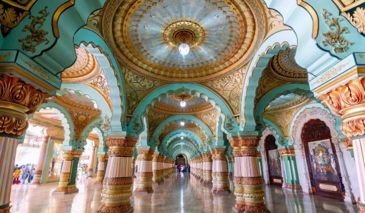 作为印度最大的宫殿之一,迈索尔宫早在14世纪就成为某种早期的宫殿类建筑,但直到1912年才建成今天这种形式,其引人注目的圆顶和华丽的拱门,外观都令人赞叹,内部也同样精致华美。到了晚间,整座宫殿会被97,000盏灯照亮,场面很是壮观。