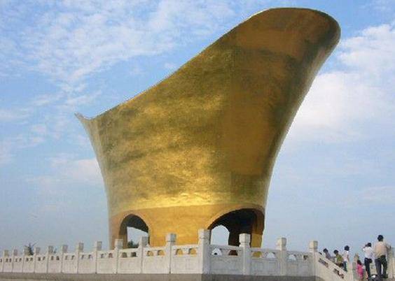 元宝亭顾名思义就是在公园内部的一个非常平整的山地之上,建造了一处类似于一个大元宝一样的建筑物。它的外表呈现了通体的金黄色而中间则开了一个小小的门供游客朋友们进去参观游玩。