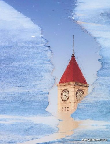 除了脚下的水滩,在生活中遇到一些湖面、河流水面时,如果转换一下你的创作思维,将水中的倒影作为拍摄主体,就能拍出如下图,鱼儿在建筑上空游动的奇妙画面。