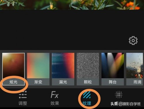 (2)在炫光小图中,选择喜欢的即可,点击小图,同样可调整炫光程度和方向。