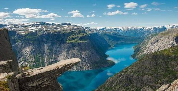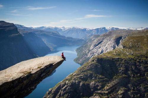 在挪威有一处景区,名字叫做巨人之舌,是当地户外爱好者最喜欢的地方,这个地方海拔有950米,游客们可以选择坐缆车到达,可以开始攀岩的地方,然后开始自己的冒险活动。