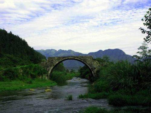龙源口石桥始建于清朝道光17年,距今已有180多年,这是一座单孔半圆形石拱桥,长33米,宽2.5米,高9.2米,横跨在20多米宽的藏龙江上。