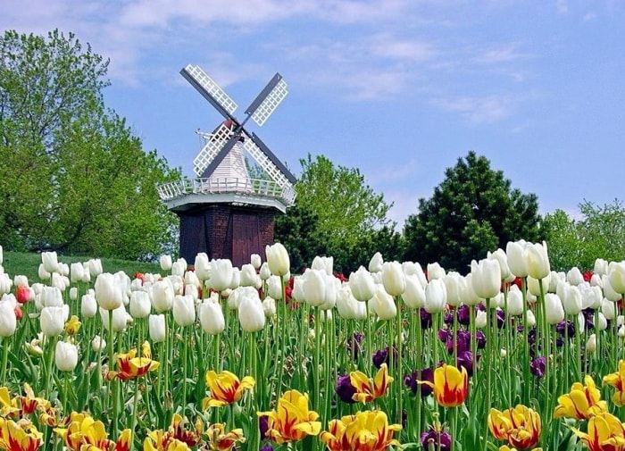 荷兰是有名的奶酪王国,除了口味醇厚,种类和吃法更是多到数不清,库肯霍夫公园每年只开放一个月,期间千余种郁金香开成花海,一些世间罕见品种价值千万。