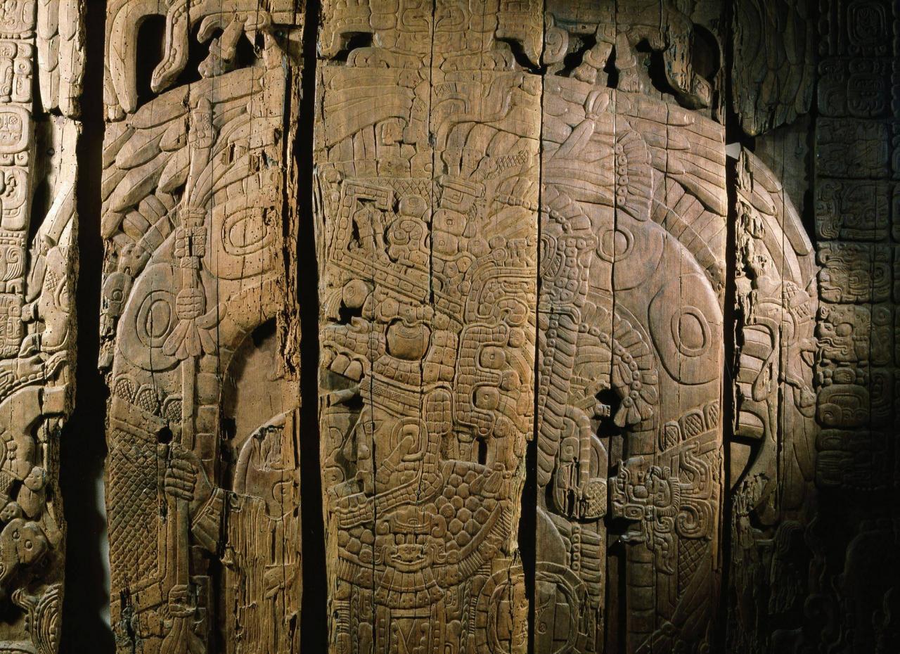 玛雅人在他们庙宇的门廊上方使用木头过梁,过梁上通常装饰有复杂的雕刻图案