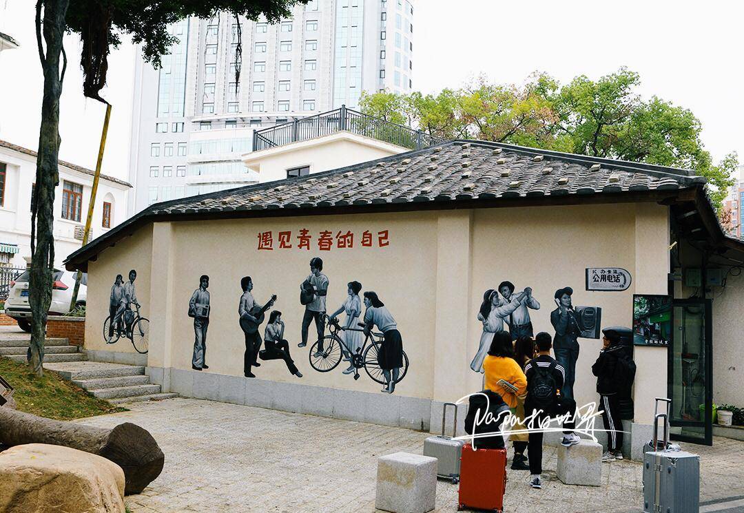这里的涂鸦墙有些画的是具有时代特色的老物件,如自行车、收音机、邮筒等,有些是卡通烂漫图案,还有的是曾在这里留下印迹的名人。我在这片特色街区逛的时候,还发现不少游客在和涂鸦墙合影留恋,摆着各种姿势,拍了一遍又一遍,总之这里是一个逛街打卡的好去处。