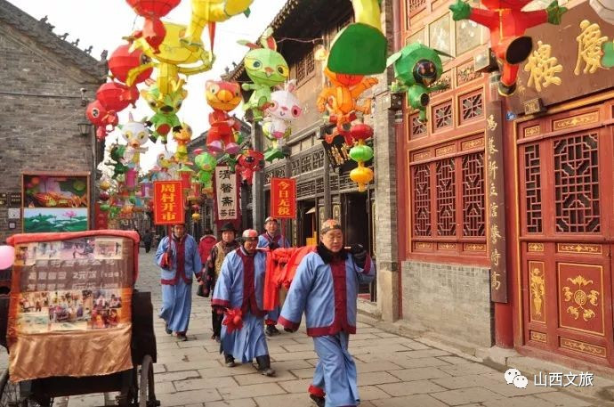 张灯结彩的大街,贴窗花。晚上大红灯笼高高挂?,晋商大院一片通红,仿佛穿越回了古代。