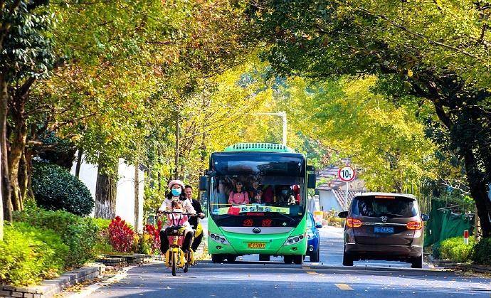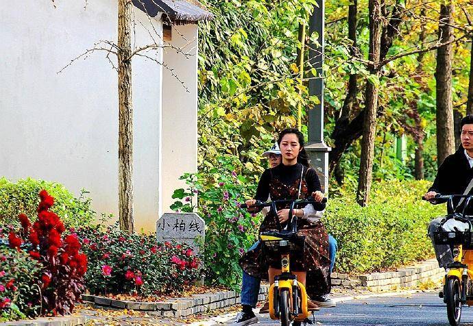 古银杏长廊全长12.5公里,3万余株原生态银杏树遍布其中。景区有景交车还有共享电瓶车,可供选择。我觉得租辆共享电瓶车倒是不错,既省力又便捷。