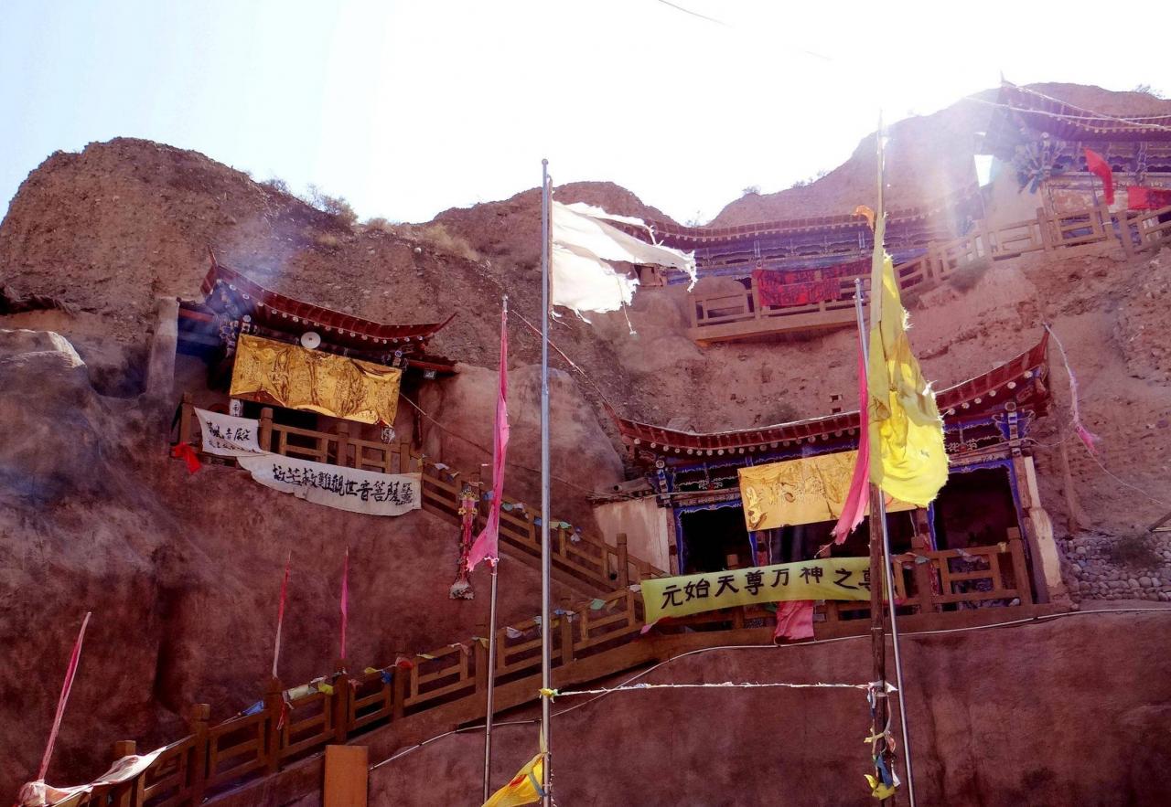 望着这些随风飘舞的残破旗帜,在各座寺庙门前悬挂的五花八门的横幅,不禁使人心存忧虑,当年曾经名声显赫的“河西小西天”,何日才能再现辉煌。
