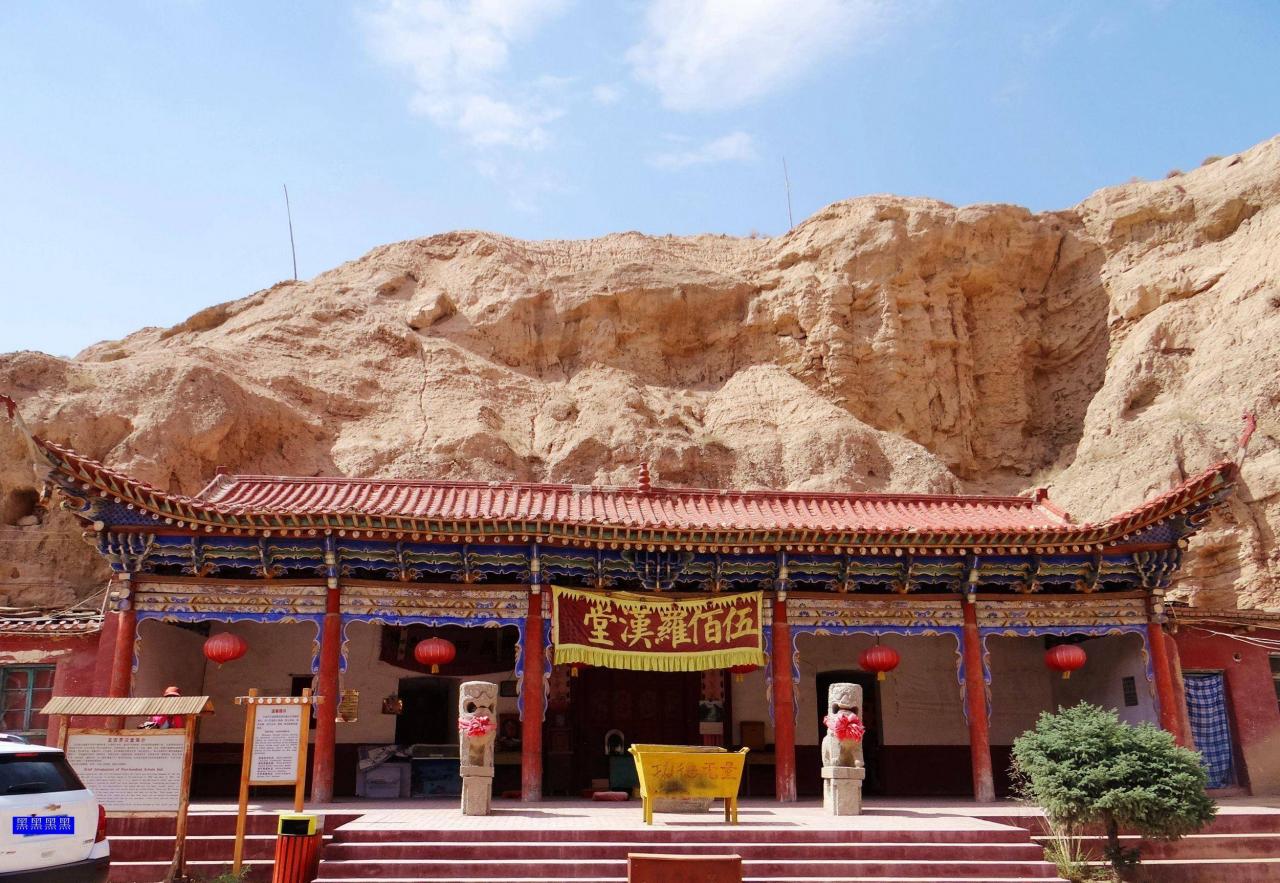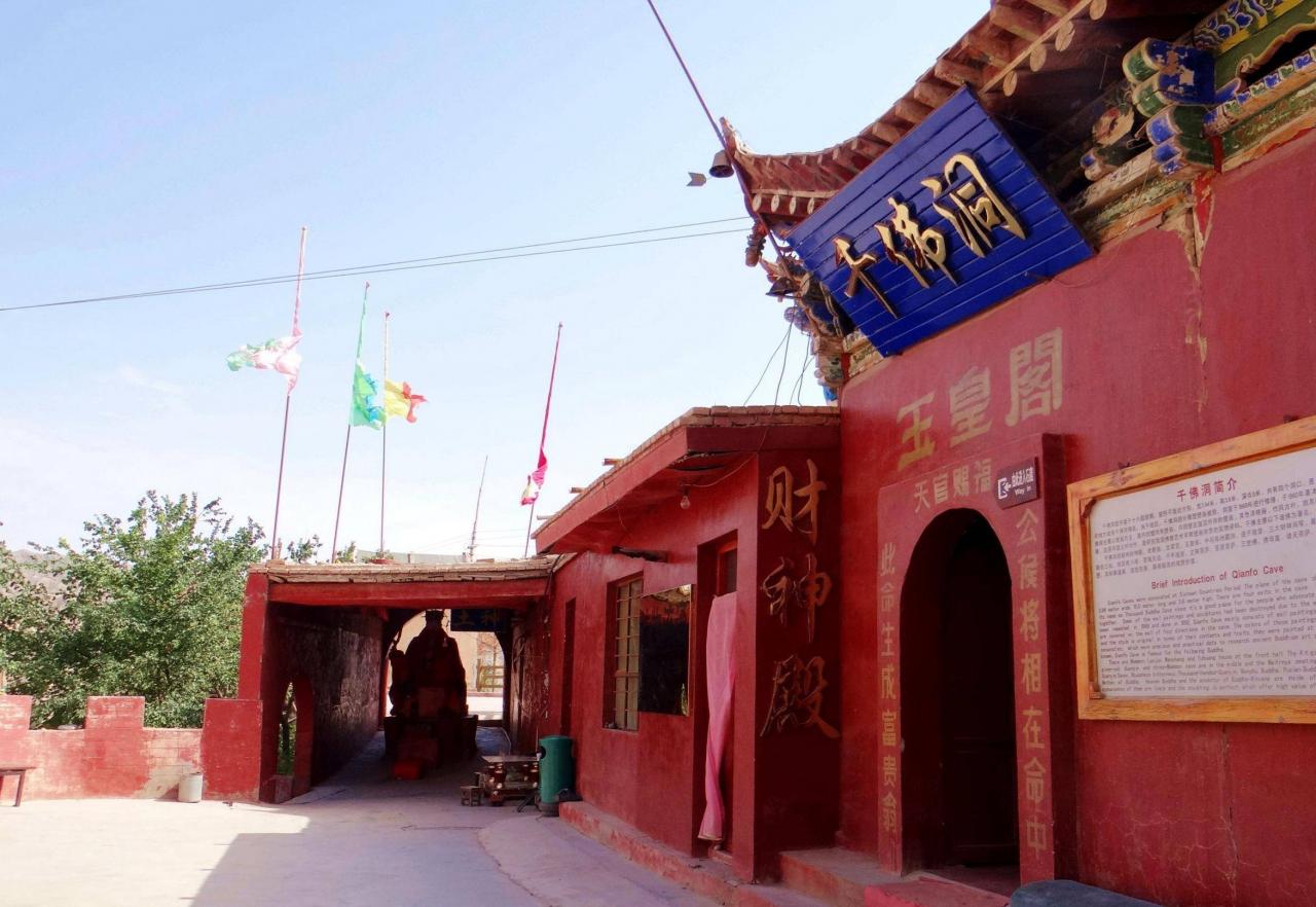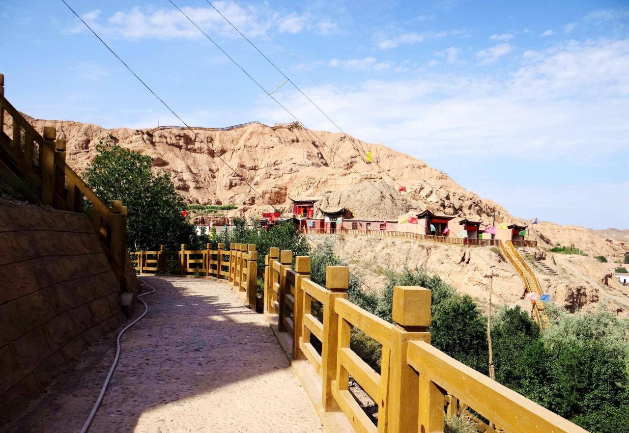 我们在文殊寺游览之后才听说文殊山石窟群在后山,于是我们继续向前走了1000米左右就看到了景点标识,这是一处规模较大的石窟群。据说最早开凿于北凉时期,也就是公元400年。洞窟依山势开凿于文殊山前、后山的崖壁上,现存窟龛70多个,佛教、道教寺庙70多个,由于历史悠久,规模庞大,文物价值和艺术价值很高,景区被列入全国重点文保单位,有“河西小西天”之誉。