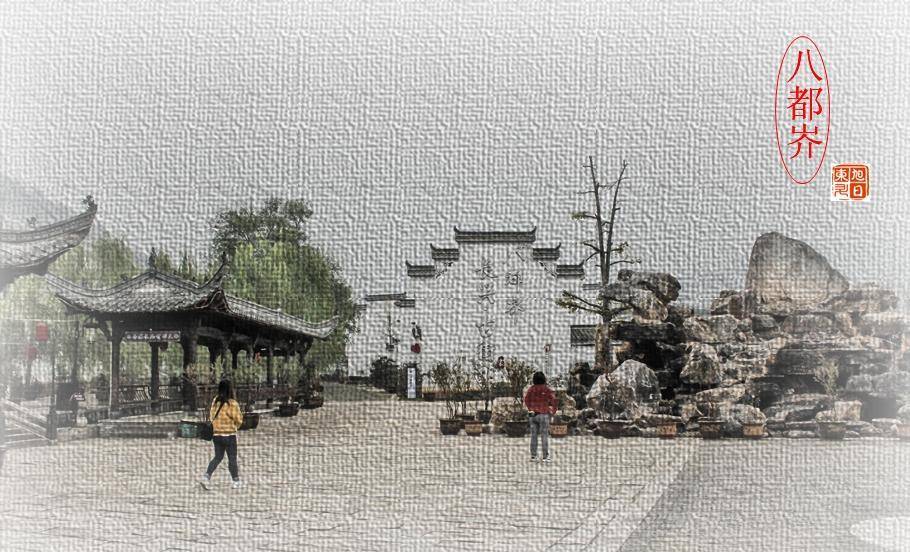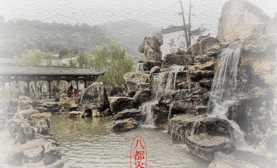 从大牌坊进来,是一个广场,广场正对面设计了一座假山瀑布,后面墙上的“八都岕长兴古街”七个大字,提醒游人这里就是老街了!