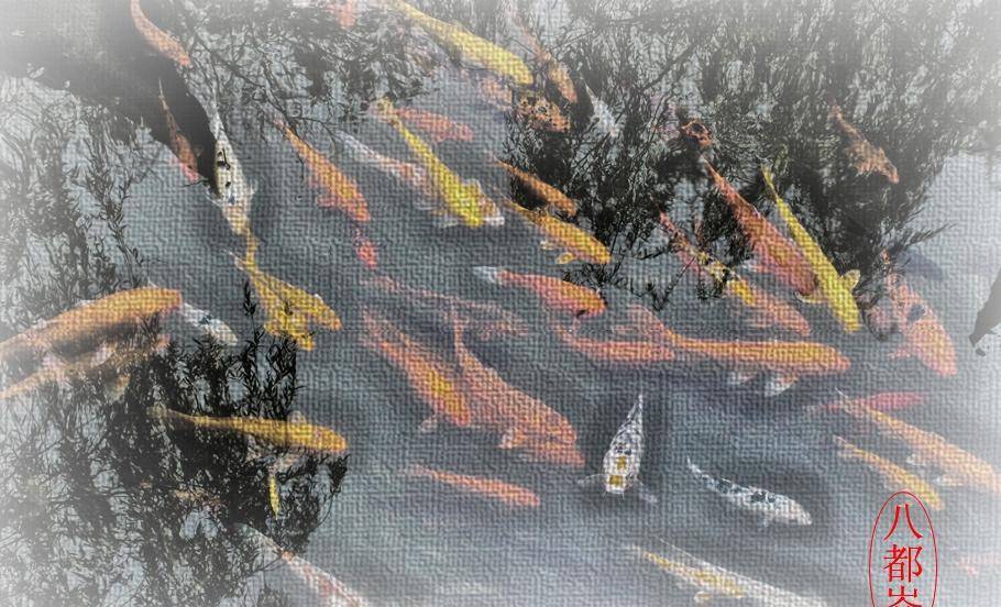 小溪里放养着成群的锦鲤鱼。