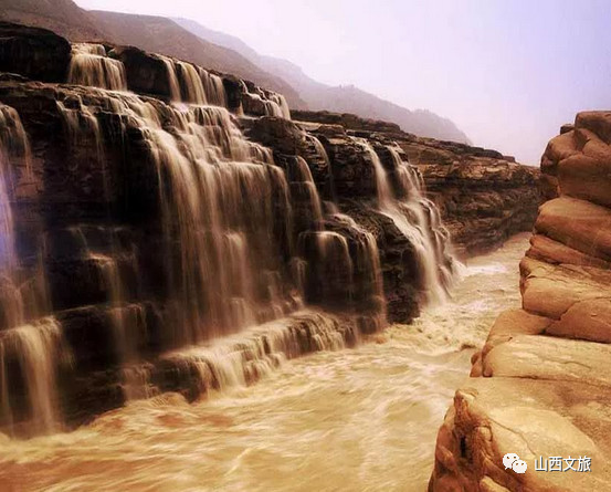 站在河边观瀑,游人莫不唱起“风在吼,马在叫,黄河在咆哮”这威武雄壮的歌声。远远望去,烟波浩淼,大浪卷着水泡,以翻江倒海之势,飞流而下。