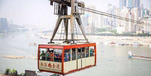 坐着缓缓行驶的索道缆车,身下是滚滚长江水,周围是山城风貌,也算得上一场绝妙的身体和视觉体验了。