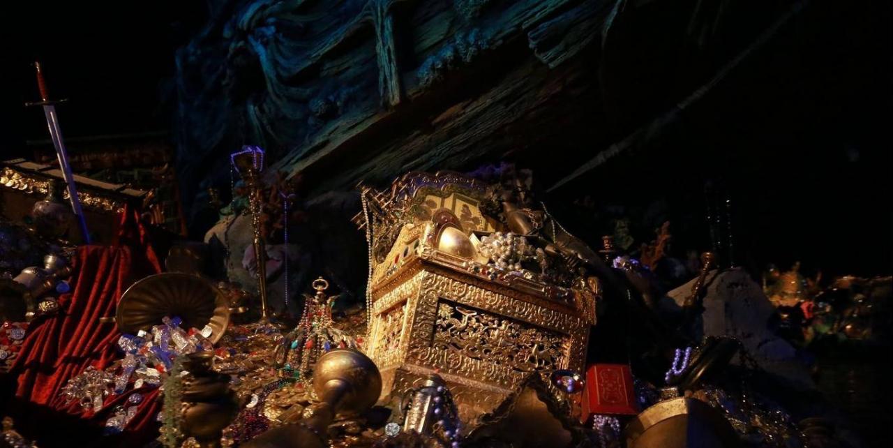 首先排队参加宝藏湾的加勒比海 盗-沉落宝藏之战。之前看过乐多港的郑和下西洋,是类似的项目,但还是被经惊艳到了,场景相当细腻,气势也很宏大,坐的战船时而前进,时而后退,很带感。