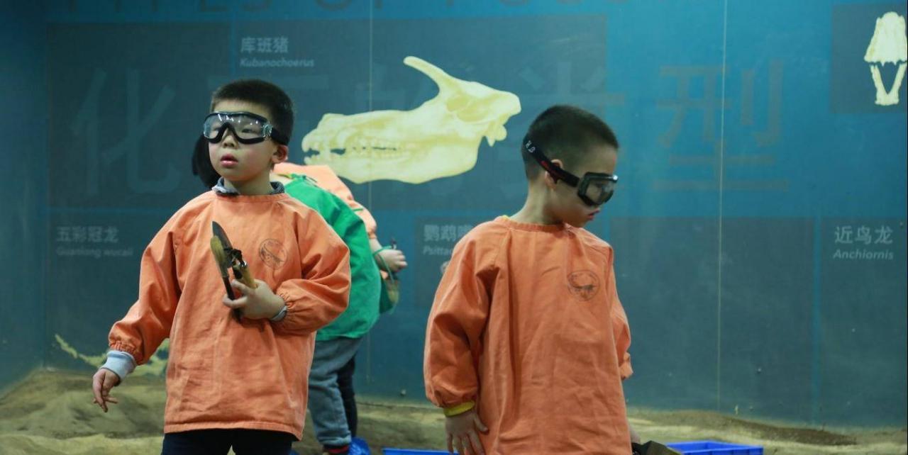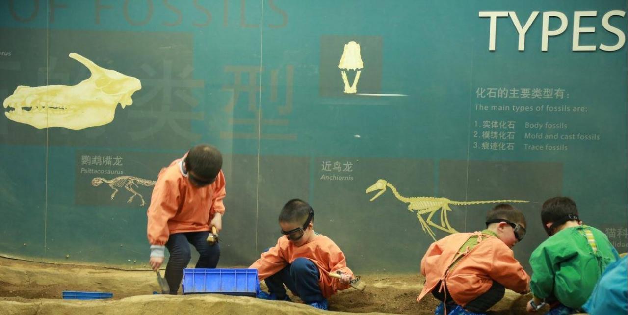 自然博物馆有很多免费的互动体验,影剧场。前提是要在9点前赶到,第一时间闯进自然博物馆,才有可能排上队伍。一个本地的大妈说早上5点半就来排队了,我直呼内行。我们不熟悉地形,最终在楼下的探索中心服务台层抢到化石挖掘项目和宇宙大爆炸项目。