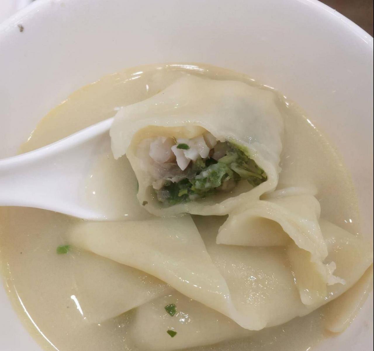 黄鱼馄饨,馅料是黄鱼肉和青菜,汤更适口。