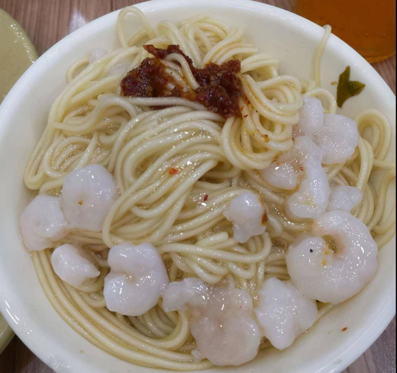 虾仁面的浇头是滑滑嫩嫩的鲜虾仁,自己倒入面中,即可品尝爽滑Q弹的鲜虾和面的柔滑质感,在口腔中萦绕。