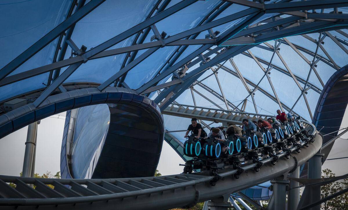 明日世界的创急速光轮,年轻人必玩,比小矮人矿车刺激10倍左右。是迪士尼乐园里较少的对身高有要求的项目,带孩子的就要做好配合好带娃了。