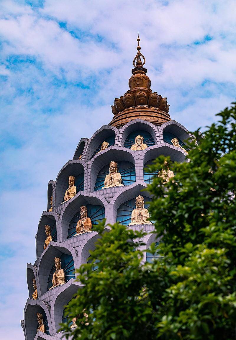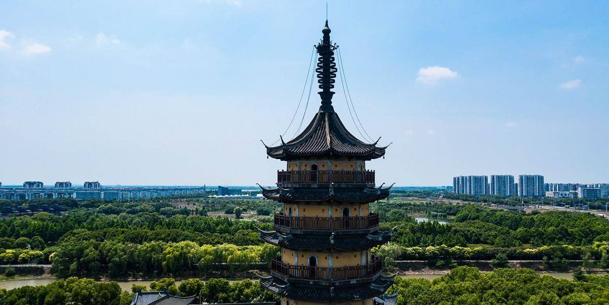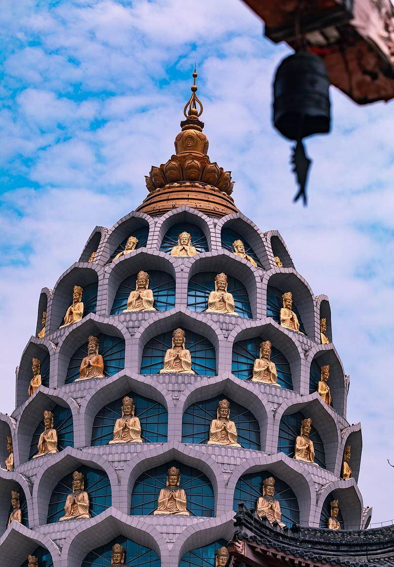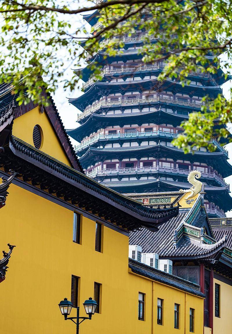 常州寺庙还是真是多,无人机拍摄鸟瞰常州,到处竖立着塔,但是常州天宁寺的天宁宝塔在江苏乃至全国有名,据说天宁塔在全国塔类属于最高的塔。这座寺庙始建于唐朝贞观、永徽年间,即公元627—655 年。天宁宝塔始建于2002年4月,于2007年4月30日开光。总建面积2.7万平方米,塔高13层153.79米,从底层地宫到顶层钟楼,整座宝塔以佛教文化为主线,以东阳木雕、扬州漆器、常州乱针绣、惠安石雕等手工艺术为表现手法,巧妙地诠释了大乘佛教的诸多教义。天宁宝塔在外形上采用了唐宋古塔的风格:八角飞檐,形态端庄,简洁粗犷,气势宏大;塔身装饰也沿天宁禅寺袭唐宋建筑的风格:华贵而不繁复,简洁亦显大气,虽无雕梁画栋之美,却有古色古香之韵,透出一股庄严之气。