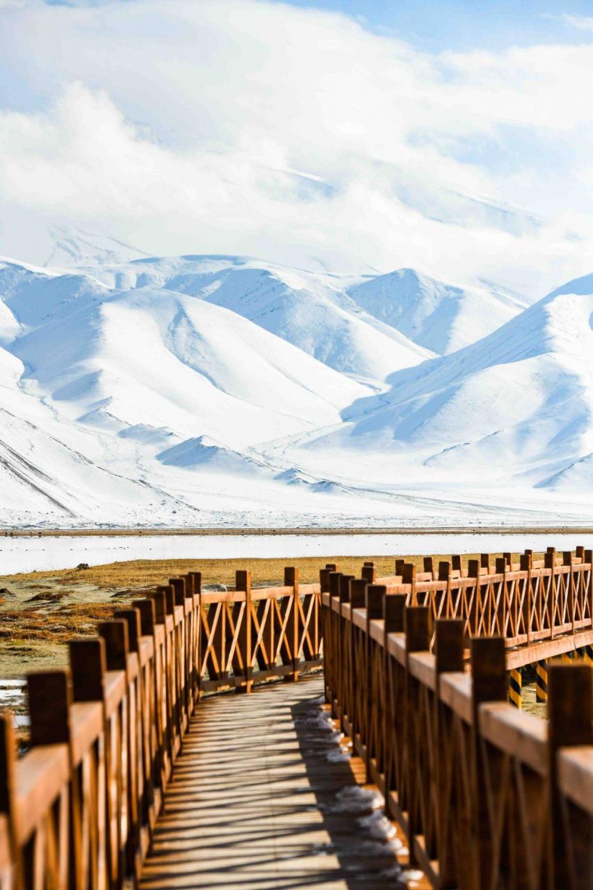 雄鹰不时的在空中翱翔,一幅大气磅礴雄奇壮美的雪域高原图画。当地人将这座山峰称为“慕士塔格阿塔”,在克尔克孜语中,“慕士塔格”意为“冰山”,“阿塔”意为“父亲”,更是因为它是冰川形成最早的山峰,故而被称为“冰山之父”,在帕米尔高原慕士塔格峰你可以一览“冰山父亲”的壮丽。