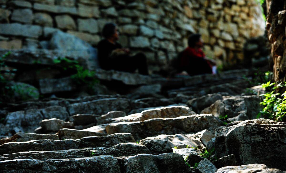 这是一个完全用石头建成的古村落。石头建的房子,青石板铺的村中小路,保存完好的古石桥、古井、古庙、古石台,周围还有茂密的植被,慢步在村子凹凸不平青石板街道上,有一种踏古寻幽的意境。