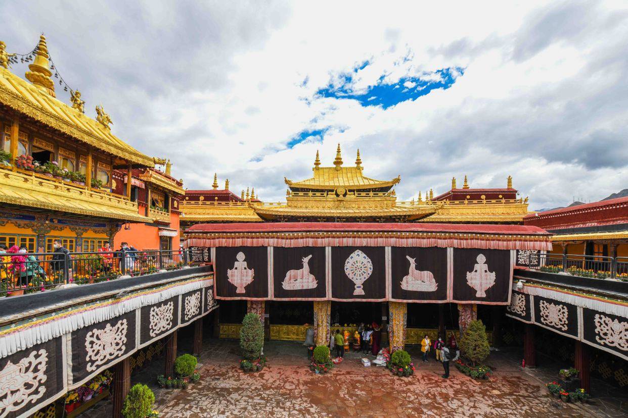 来到大昭寺游览的最佳路线从觉康大殿的左边沿顺时针方向参观,这样可以从进入大昭寺游览完第一层后达到第二层参观,再顺时针转动经筒绕大殿一周可以从院子的西南角的楼梯上达到大昭寺的金顶。站在大昭寺的金顶上可以俯瞰整个大昭寺广场,还可以遥望壮阔的布达拉宫。大昭寺也是我国藏传佛教的重要组成部分,在游览完大昭寺之后可以看到寺庙的空地或者树荫下有一些僧人正在进行激烈的争论,这是佛教中的辩经文化。