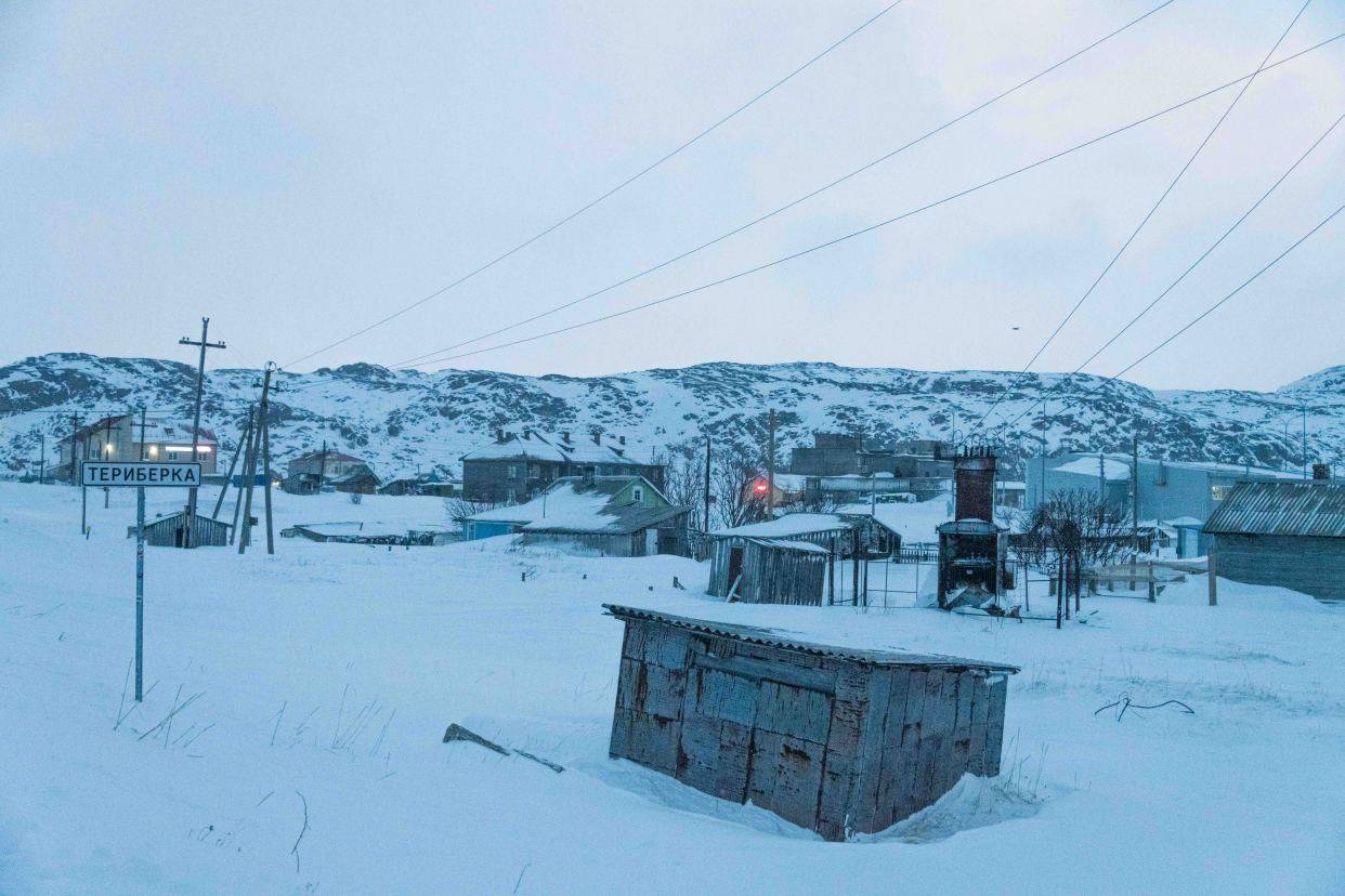 顺着堆满积雪的道路走去北冰洋的港湾,来到荒原上的小镇,倚靠着覆盖皑皑白雪的山甸,只有两条路,一条通往镇外的老城,一条是镇子上的主路,两侧楼房林立,仅有的几家便利店掩着厚重的铁门。日落之后的捷里别尔卡路面上几乎没有人,如果第一次来此,一定会有这里已经被丧尸袭城的错觉。镇上几家生意凋零的渔业铺子也准备拉下卷帘门关门了,顺着积雪厚实的道路向港湾的方向走去。