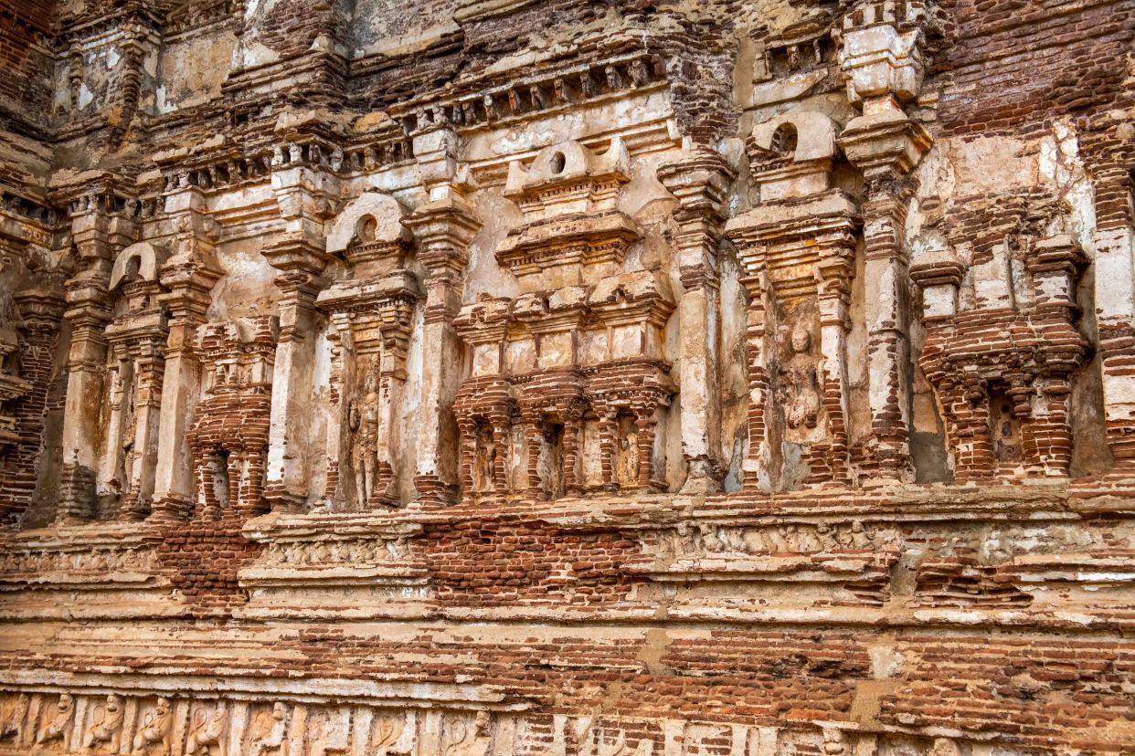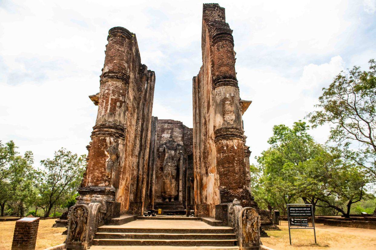 皇城北面紧邻的就是四方庭院——波隆纳鲁沃遗址的精华所在,四方庭院的核心是一座圆形佛殿, 是古城中最精巧典雅的建筑之一。北出古城后,会看到一个巨大的建筑物,这就是兰卡提拉卡佛殿,外墙壁上有许多的浅浮雕装饰,进入殿内会看到一座巨大的无头立佛,很难想象,在红砖砌成的高墙上,是如何把浮雕刻上去,又经过千百年的风雨而不倒。
