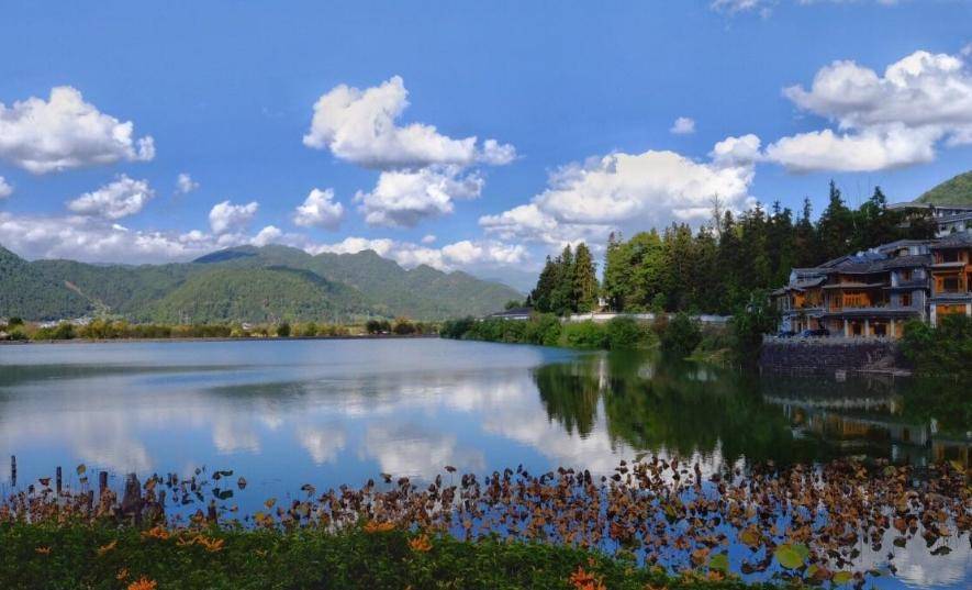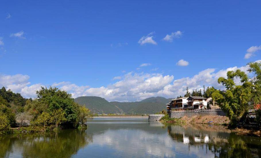 整个镇子的前方是一块平地,一马平川,再往前走走,就能看到环村流淌的溪水,溪水鱼虾嬉闹,溅起的水花朵朵将阳光折射出五彩斑斓的颜色,潺潺的水声已经足够让人心驰神往,垂柳拂岸更是吹到了人的心上,恨不能住在这里,日日都想看到这样子的景色,还有很多名人来到这里之后留下了称赞的诗句,如此和谐的田园风光总是让人流连忘返,简直堪称“云南小苏杭”。