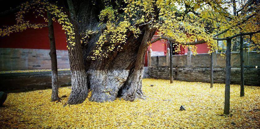 后来道家也跟着把银杏树视为了仙树,甭管是佛家还是道家,银杏树都在寺庙当中唱了主角儿,在西山大觉寺的无量寿殿前有一棵号称‘银杏王’的银杏树,它是辽代咸雍四年也就是公元1068年种植的,少说也有一千多岁了