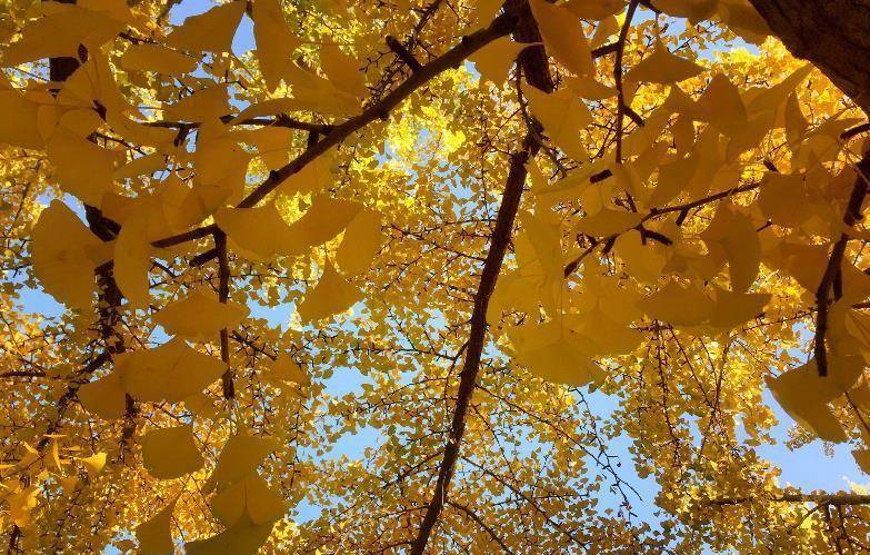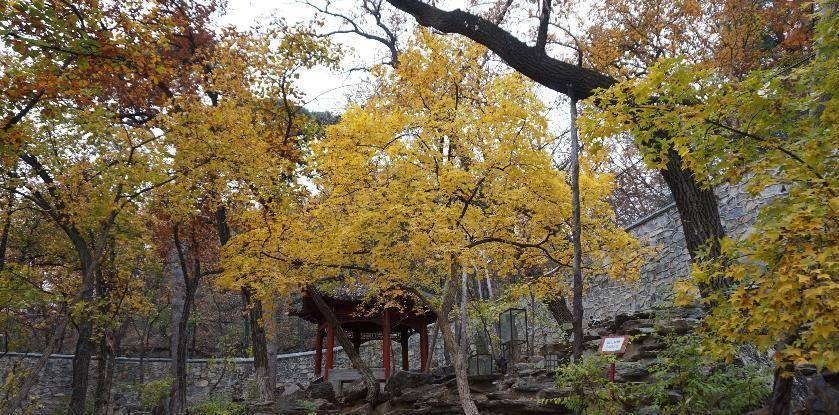 更重要的是银杏叶片本身是淡绿色,变黄之后是灿烂的金黄,所以在视觉上占了很大的优势,因此也被誉为北京最古老的银杏树林