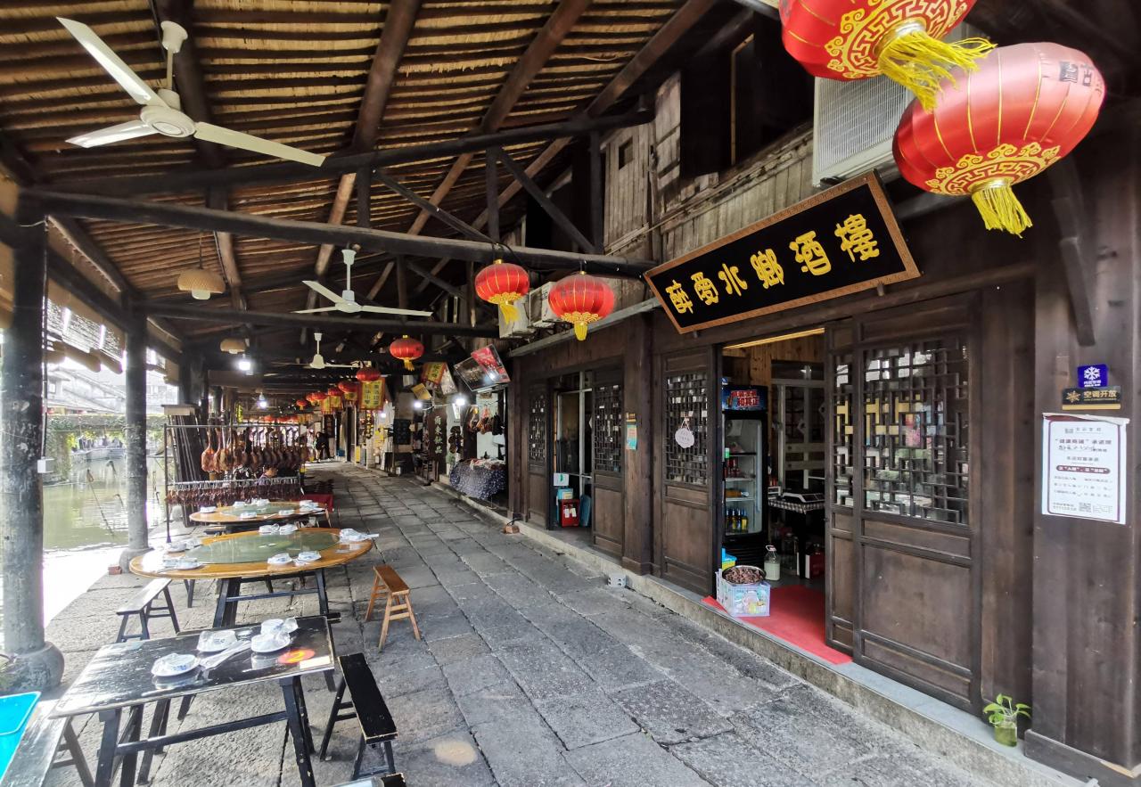 古街上有好几家小酒馆,绝对是原味的地方。你可以到老茶馆里,品尝那里的茴香豆和碗茶,毡帽和绍兴方言会让你仿佛置身鲁迅的阿Q时空。