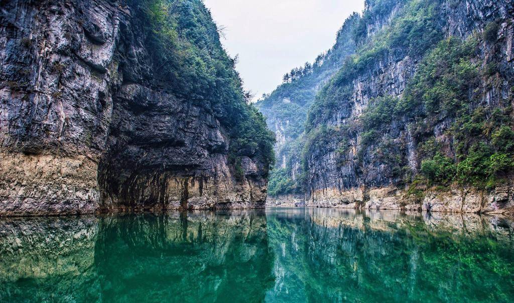 青杠塘镇位于清溪河上,这里的清溪峡谷、九道门、五峰岭组成十二背后景区第三部分。清溪河是芙蓉江的一条支流,发源于绥阳县。清溪河属于桐梓—绥阳保留区(类似于生态保护区),两岸悬崖壁立,令人望峰息心。而清溪河因为修建了水坝,形成了一个人工湖,湖水绿如翡翠,波澜不惊。在清溪河游船价格为120元,漂流为160元。