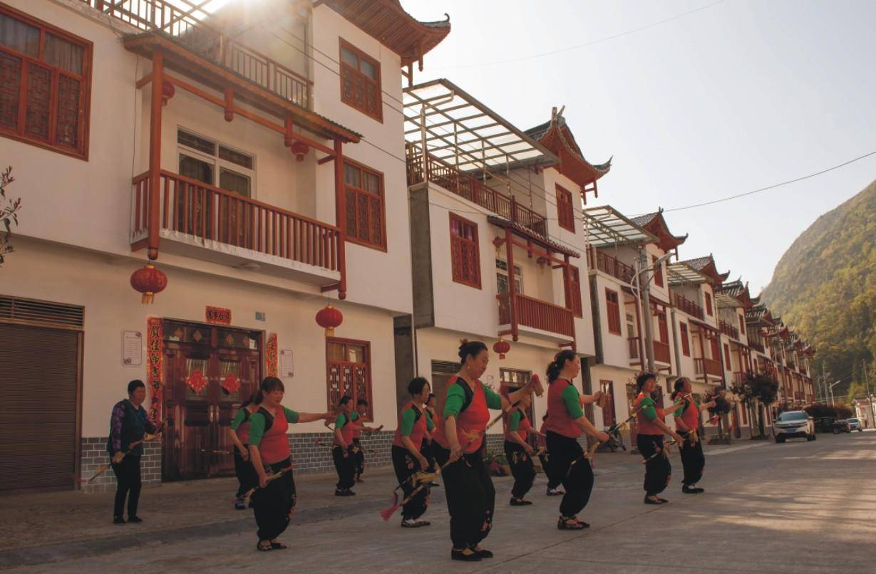 村中王家老屋等老宅子柱础古朴、瓦接椽连,其封火墙垛、墙面彩绘、四合天井等依然保存着村寨的历史记忆。但今人的居住条件早已日新月异。离村委会不远,文化广场的橱窗内容丰富,风雨桥雕梁画栋,特色宜居小区的别墅型村街,一律为白墙青瓦、红门花窗、彩雕围栏、庭院与花园相通。溪河经护堤治理水清石美,道路经硬化处置平坦洁净,路灯的灯柱排排笋立,电信网络畅通无阻,所有依山傍溪的民居都做到了一户一庭院、一户一花园、一户一景观的别墅式布局。今天的耍操门,虽已无人布阵耍操,但村民的日常生活井井有条,春种秋收,夏凉冬暖,花团锦簇,植被葱茏,无尘无污无纷争,更有广场舞、太极拳以及节庆时的秧歌舞、摆手舞、土家背鼓等在此争奇斗艳,民歌《黄四姐》声震谷壑,不愧是茅田乡镇与建始县城一方唯美的后花园!听罢介绍,我了解到深感“酒香不怕巷子深”之意。耍操门虽然路远天高,但由于空气清新,气候凉爽,每到暑期,这里的民宿人满为患,武汉、宜昌、恩施、建始等地的城里人携家带口前来避暑休闲,足不出户,可经营挣钱。