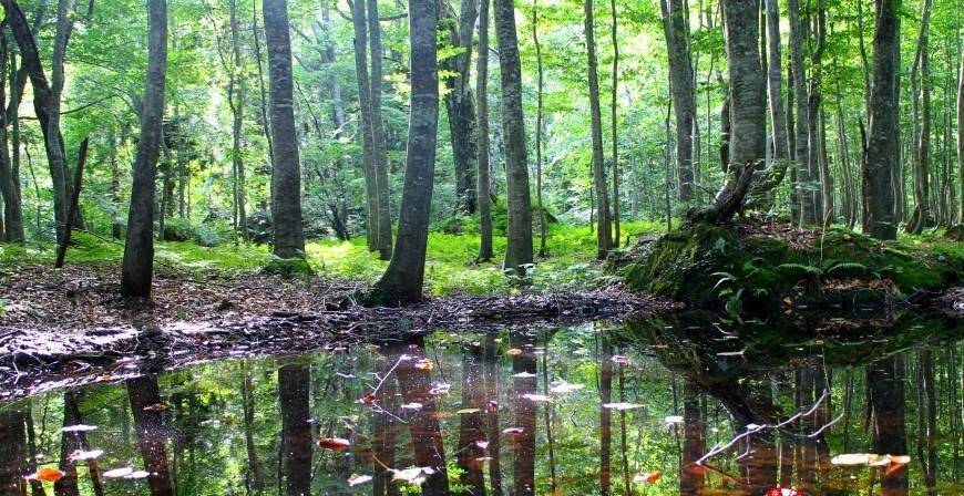 沿着步道,可以看到树龄400年的「400年山毛榉」、被认定为下一代400年山毛榉接班树的「魔法山毛榉」、水中倒影形成翠绿绝景的「山青蛙之池」等,都是值得好好深呼吸、拍照留念的景点!