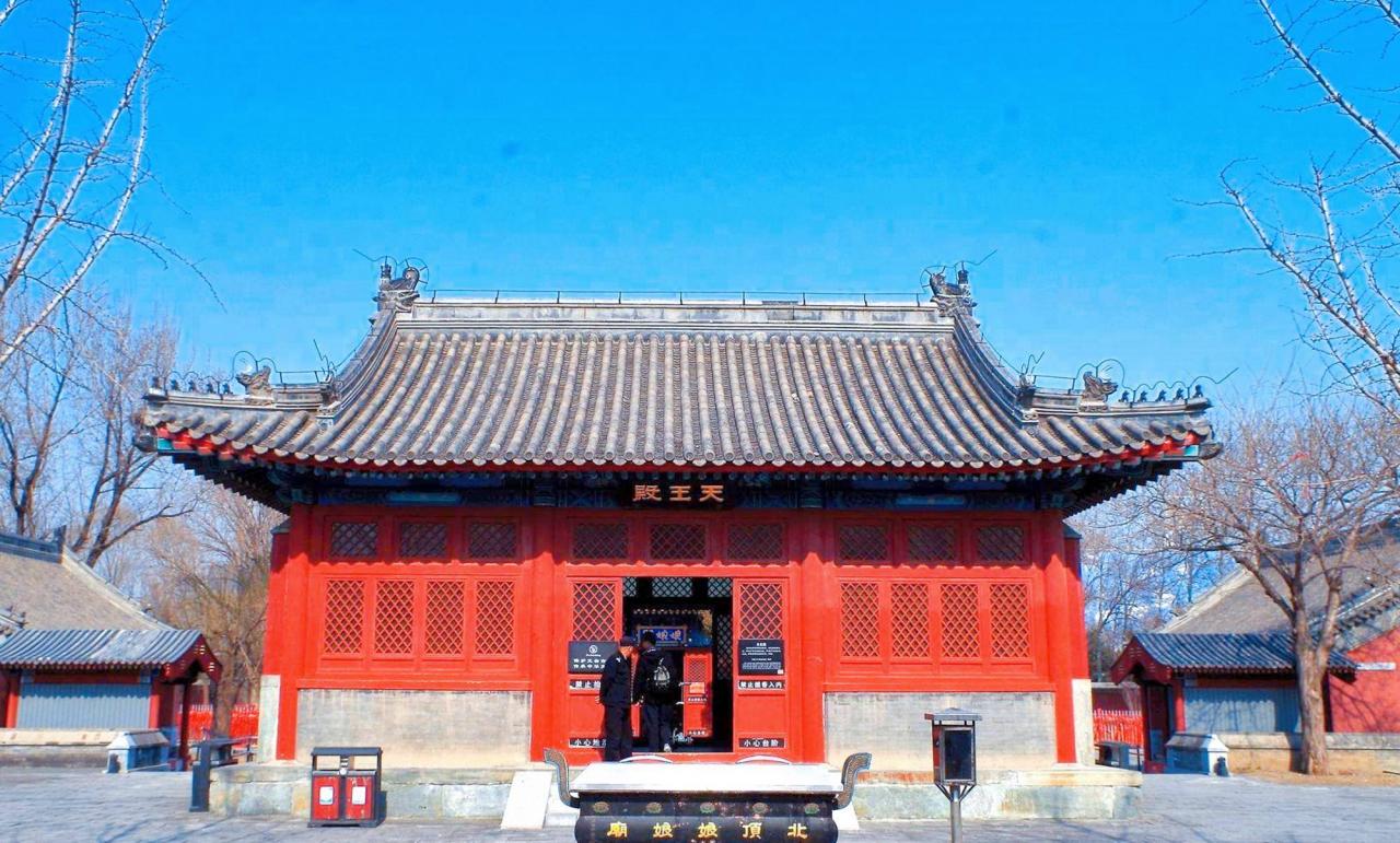 事实上,北京娘娘庙并非只有一个名称,北京娘娘庙还被当地居民称为北顶娘娘庙,它位于朝阳区顺德门外,距今已经五六百年了。这座寺庙始建于明朝,随后北顶娘娘庙成为北京中轴线上极其特殊的一座寺庙。北京娘娘庙占地总面积近一万平方米,并沿着北京中轴线依次建立了许多宫殿。现如今,北京娘娘庙已经成为北京城最为特殊的文化保护单位,而它的附近就是国家体育馆和国家游泳中心。