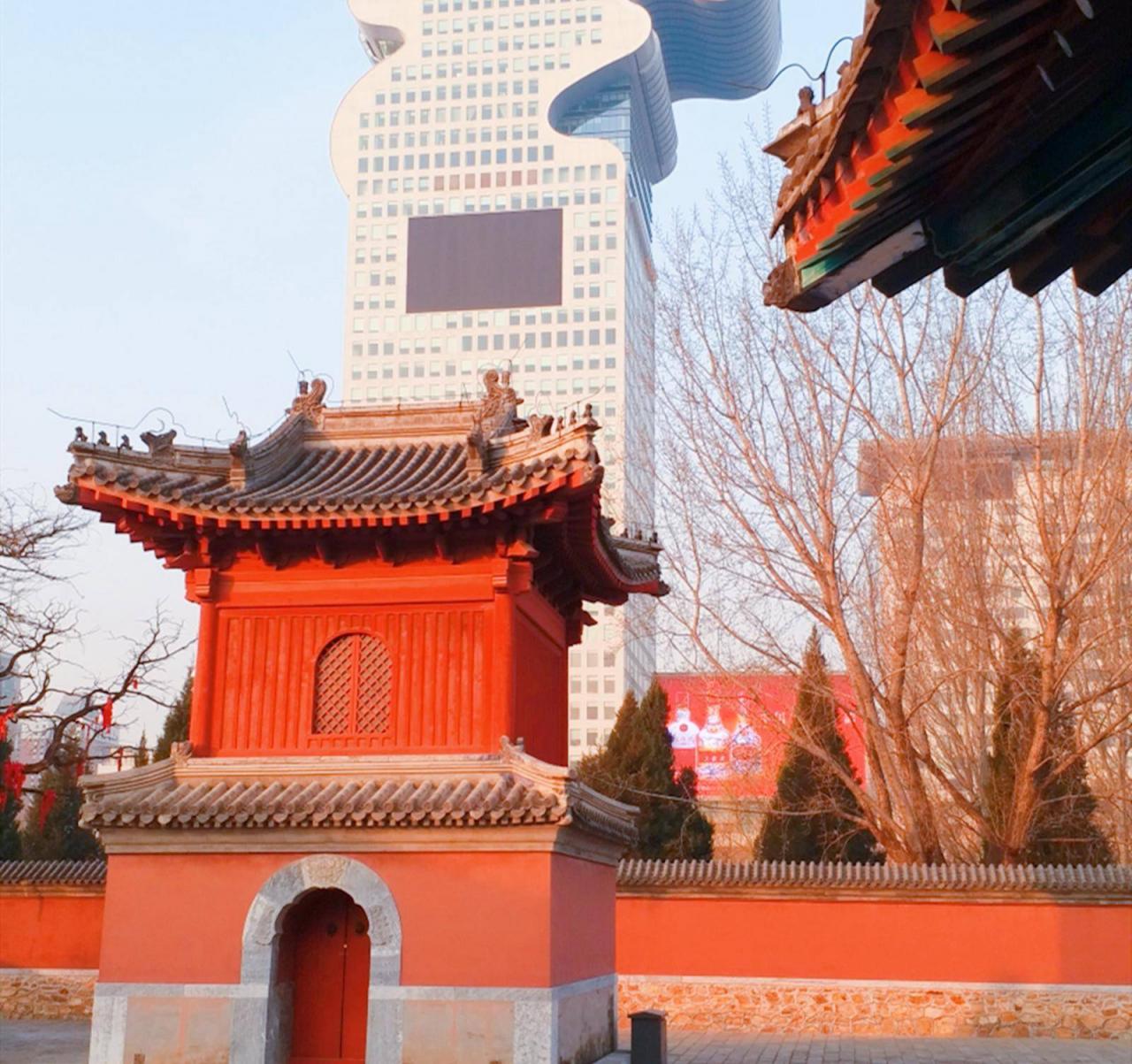当人们来到朝阳区之后,就会在鸟巢和水立方的周围发现这一座特殊的古老建筑。现代化建筑与古老建筑相辅相成,共同形成了北京城内极具古典韵味和现代化技术的建筑体系。