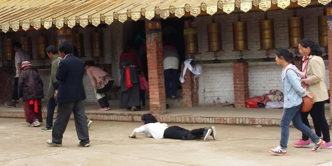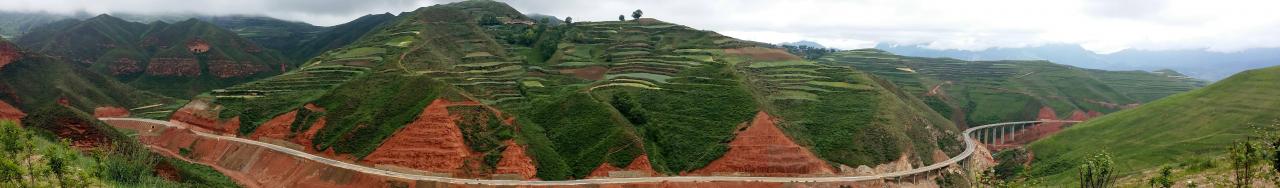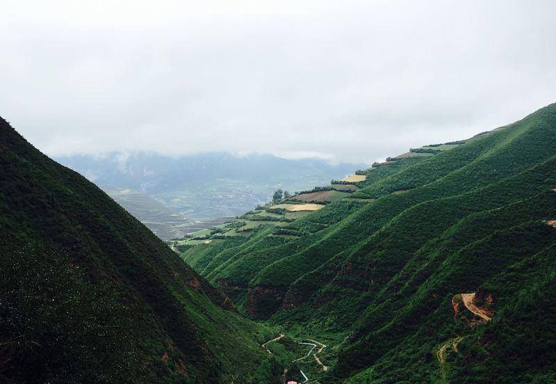 前往杓哇寺时,走错了路(新修的路,路况好),多走了些路程,但因祸得福,沿途风景非常的秀美和壮观。站在观景台望去,山路穿梭在绿山的腰间,遇沟架桥,山顶上飘渺着白白的雾气,蜿蜒公路点缀着裸露的红色山体。返回时,路途近了不少(导航地图提供的路线),却是一路坎坷,先是下山路的坡度很大,路窄,到达山底都是泥泞土路,有不少积水,虽是县级公路,但是路况太差。
