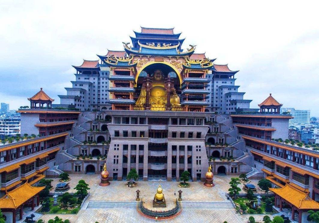 整座建筑占地面积约为4.6公顷,主体建筑高约108米,有21层不同的楼层,光是大楼之前的牌坊就有30米高。云天宫斥资20亿修建而成,整体建筑奢华之中带有肃穆的感觉,正面观看云天宫就会看到一尊大佛,它高30米重660吨,被人们称为“东南亚第一大铜佛”。当然,云天宫也不只是看起来很奢华而已。