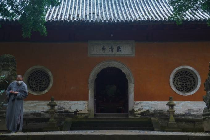 第四站打卡天台国清寺,景区总面积为73万平方米,周围古木参天,绿树成荫,五峰环抱,双洞潆流。