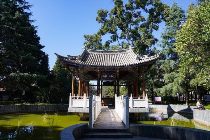 巍山蒙阳公园,俗称大公园。公园东部原来是文庙的雁塔坊和崇圣祠。整个公园有很多古树,其中人文院落,保存的也较完整,有不少的市民和游客在这里遛鸟看书,是一个休闲娱乐的好地方。