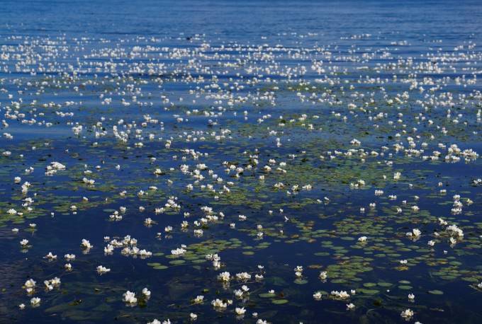 ——洱海上多不胜数洁白的海菜花(“水性杨花”)